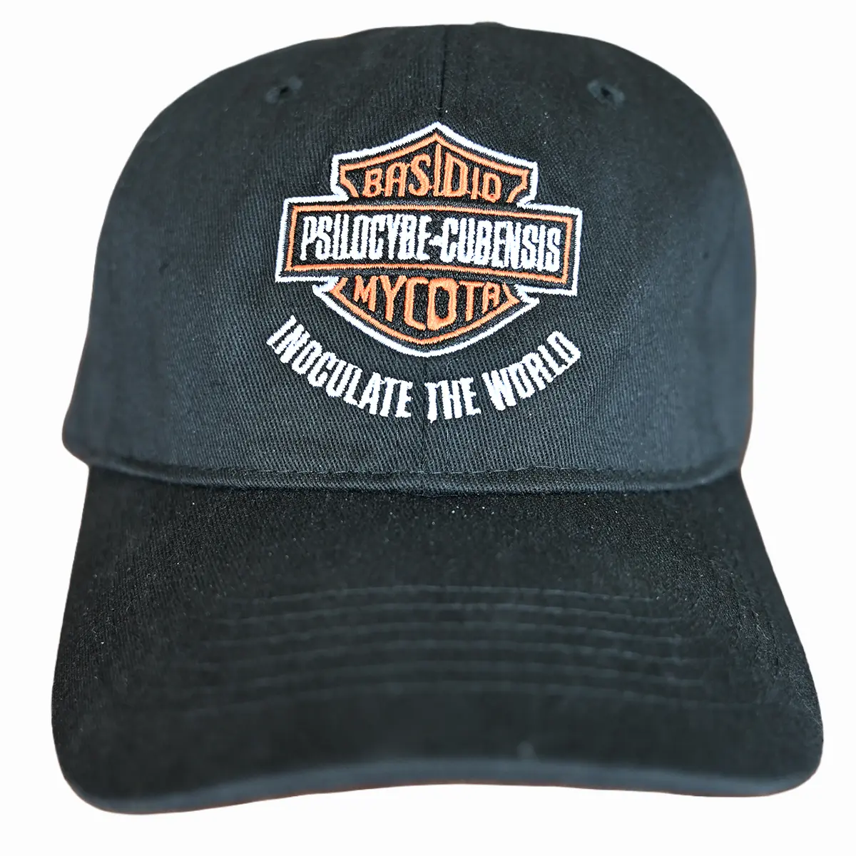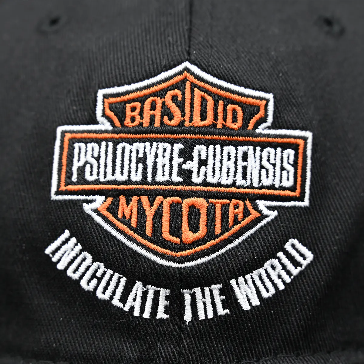 The beloved Cendrars Marbling Basidio Mycota biker design is now on a soft adjustable dad hat style baseball cap. A stylish and practical accessory for your warm weather wardrobe.