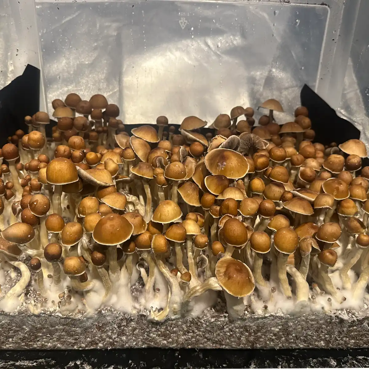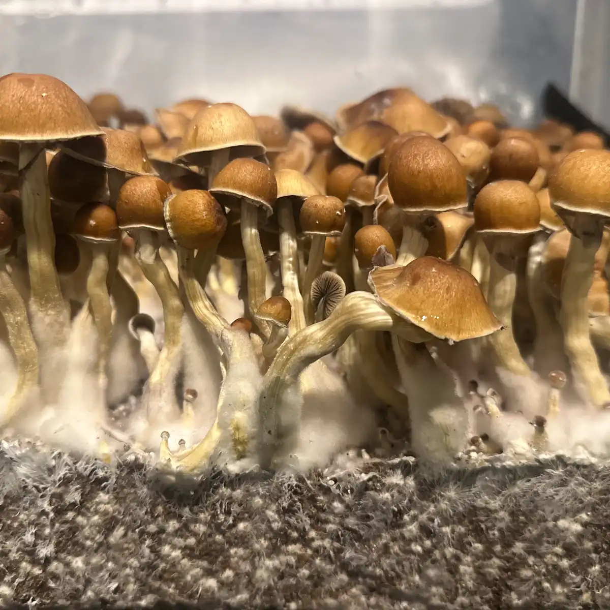 Cap / Stem features: This strain has several unique features, including golden, bell-shaped caps, and unique white edges on their caps.